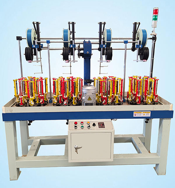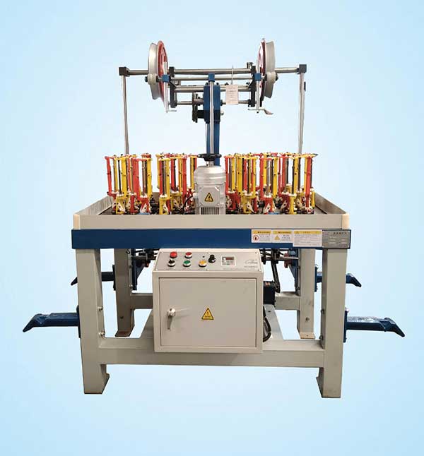 用途:織帶(鞋帶、服飾帶、松緊帶、波浪帶、滾邊帶、肩條帶等),測量繩、手提繩、拖車繩、工具用繩,高空作業(yè)繩等各種繩帶的編織機。